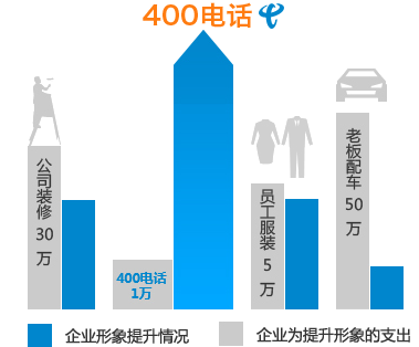 哪个投入对企业形象提升有力?哪个性价比高?职业装、装修、宝马都需要客户上门才能发觉,而一个400电话,只要客户与贵公司联系就能发觉。
